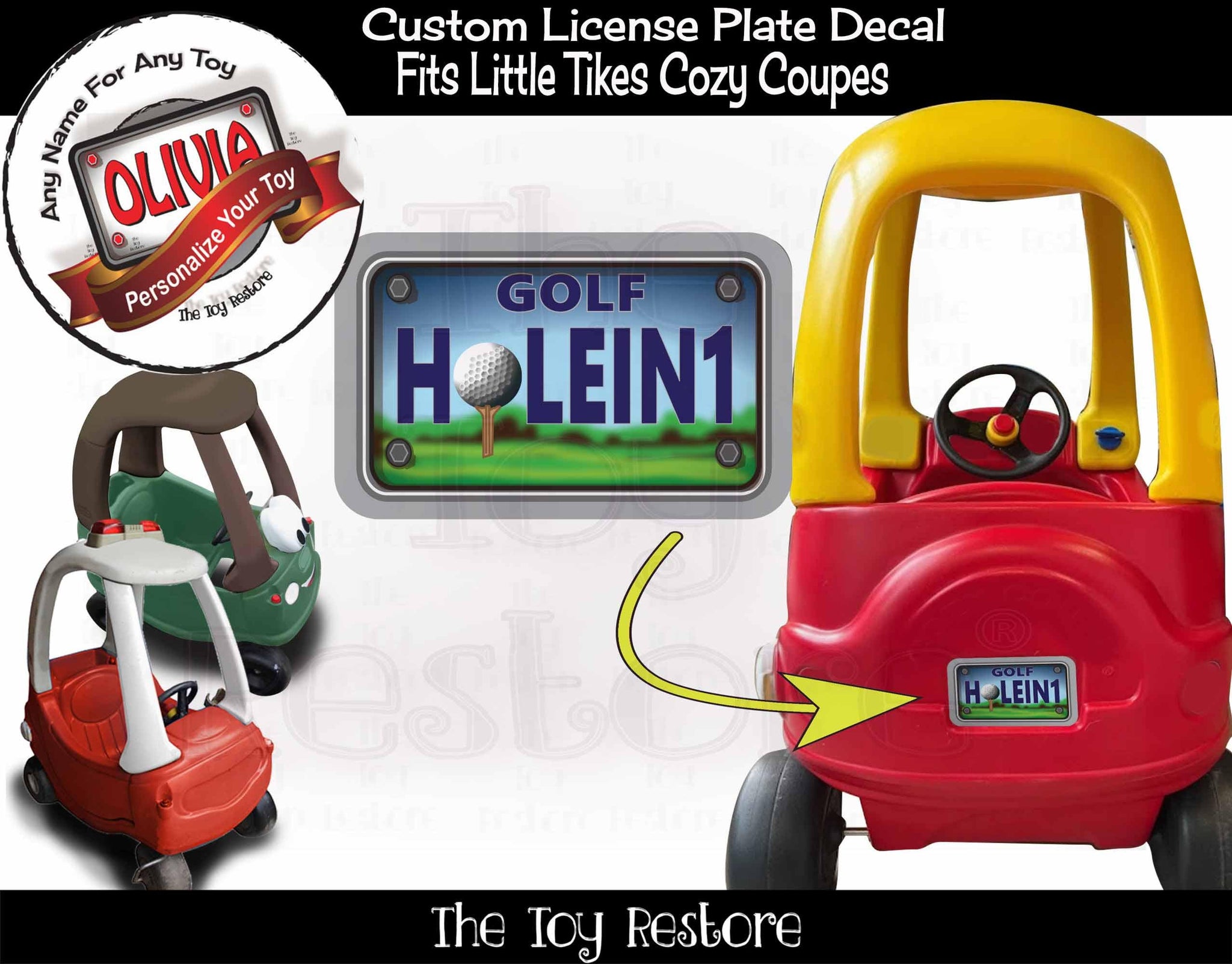 Golf Cart License Plate Replacement Stickers fits Little Tikes Cozy Coupe Car