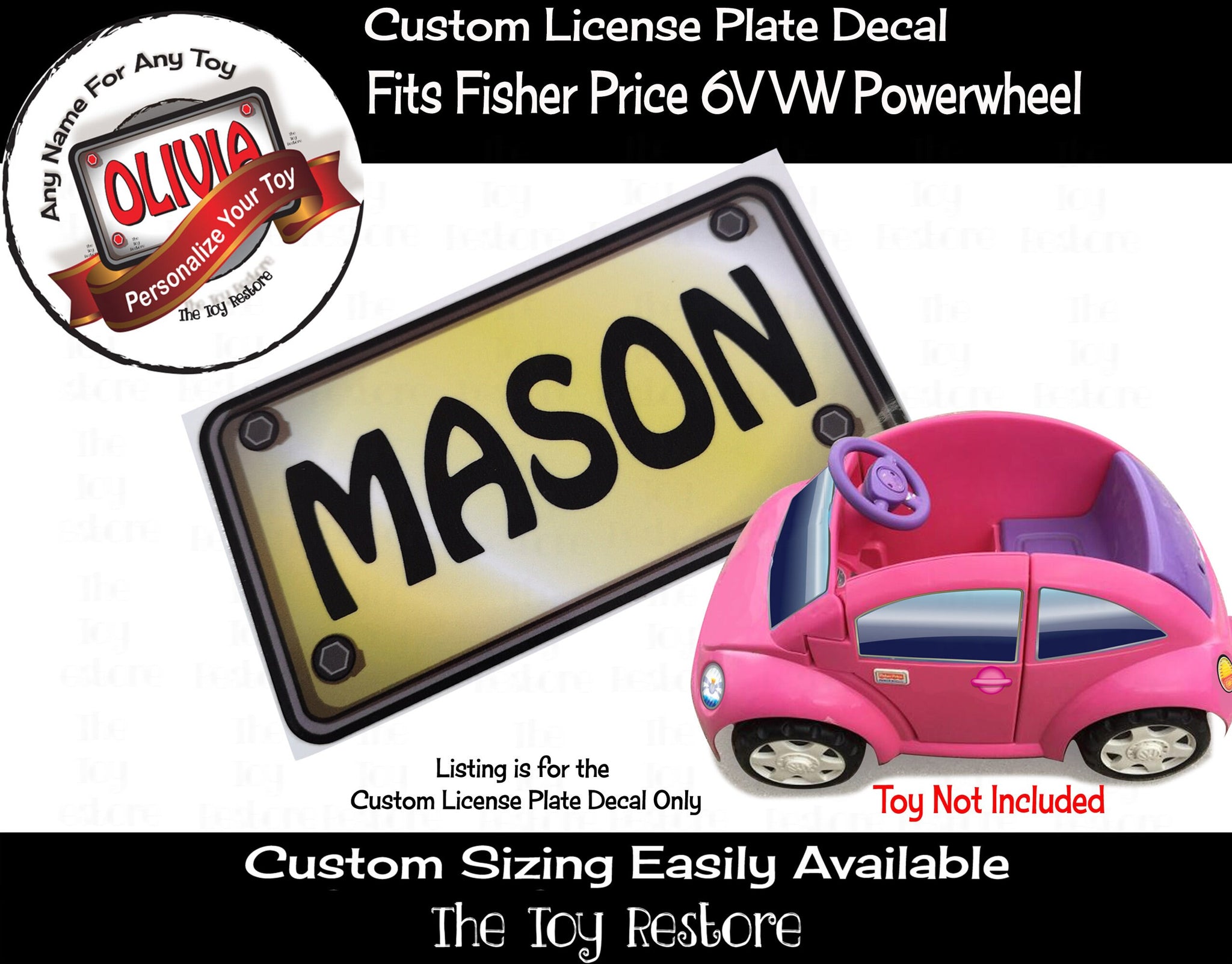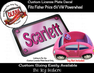 The Toy Restore Color Choice Custom License Plate Decal Replacement Stickers fits Fisher Price 6V VW Volkswagon Beetle