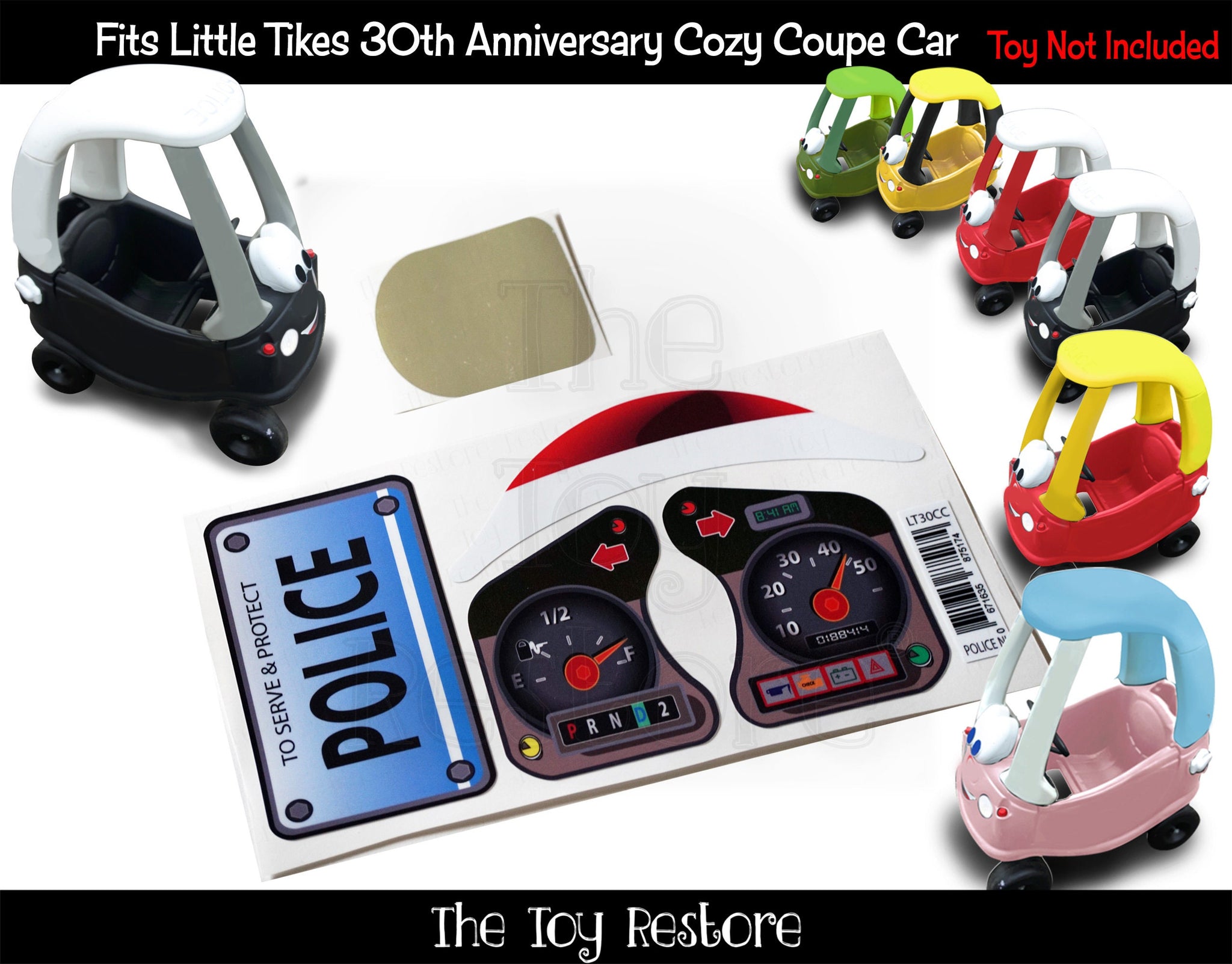 The Toy Restore Replacement Stickers fits Little Tikes 30th Anniversary Patrol Cozy Coupe Car Police Decals